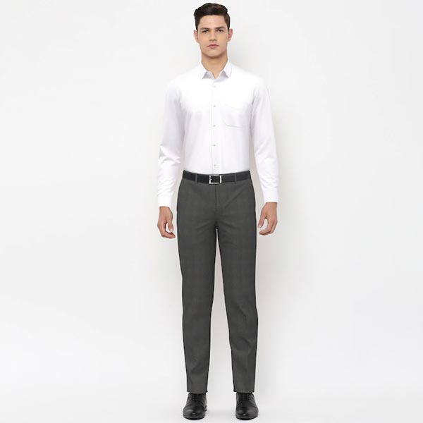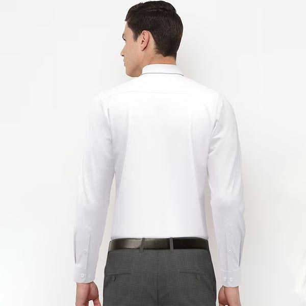 White solid opaque Formal shirt, has a spread collar, button placket, 1 patch pocket, long regular sleeves, curved hem