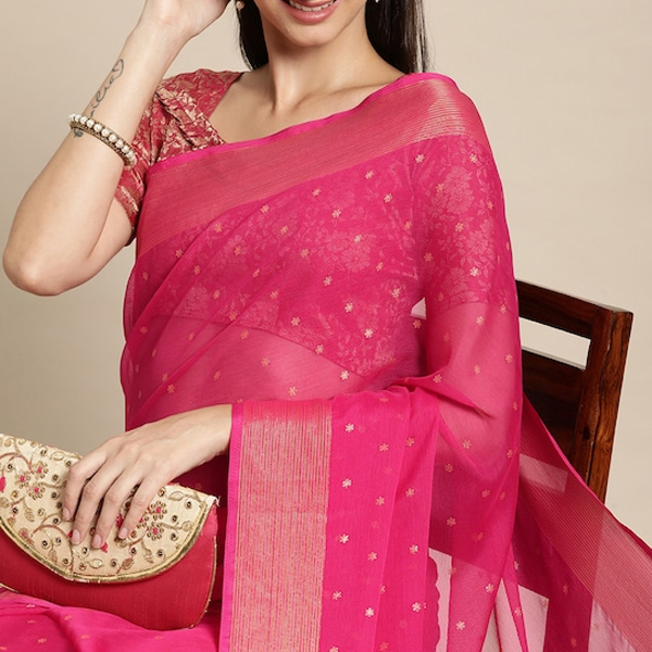 The saree comes with an unstitched blouse piece