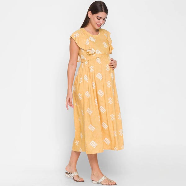 0 review(s) for "Women Yellow & White Printed Maternity Midi Dress"